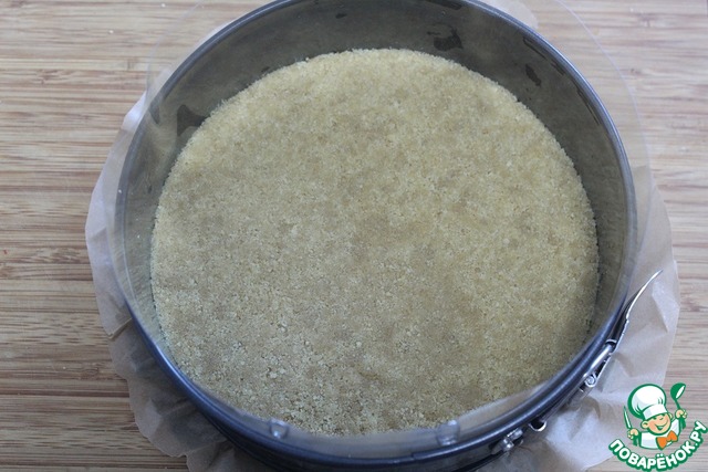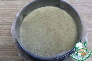 Бока и дно разъемной формы (диаметр 17) выложить пергаментом или ацетатной пленкой.