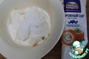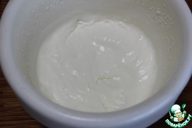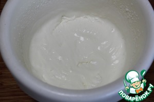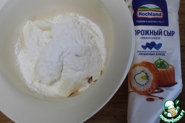 Выложить сыр в чашу, добавить сахарную пудру. -