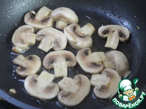 Готовые овощи выложить в тарелку, а в эту же сковороду добавить оставшееся масло и обжарить шампиньоны на среднем огне по 3-5 минут. Посолить, поперчить.