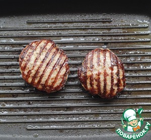 Обжарить котлеты на сковороде гриль с двух сторон до готовности, минуты по 3 с каждой стороны.