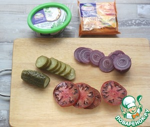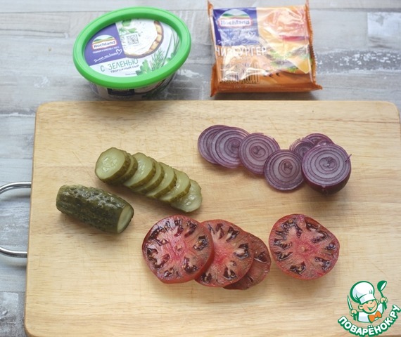 - Сыр плавленый (сыр плавленый Чизбургер ТМ Hochland) — 4 ломт.
