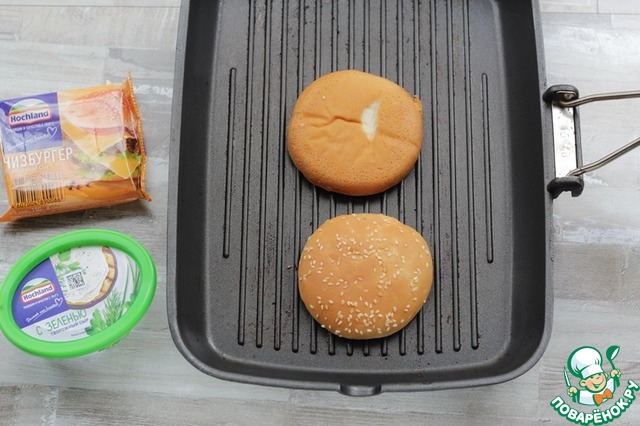 На этой же сковороде подсушить булочки для бургера.