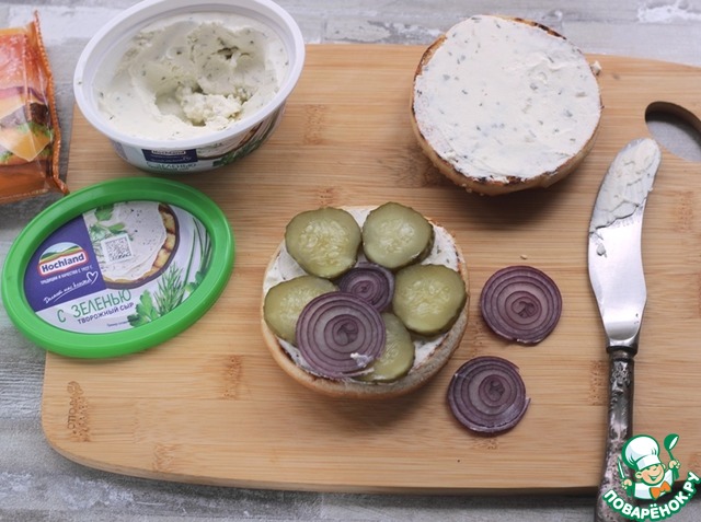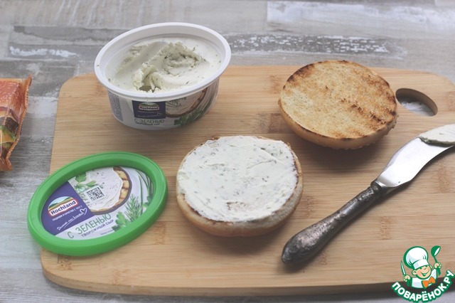 Поджаренные булочки смазать творожным сыром Hochland