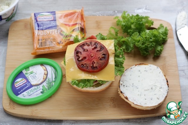 Выложить второй ломтик плавленого сыра чизбургер и помидор.