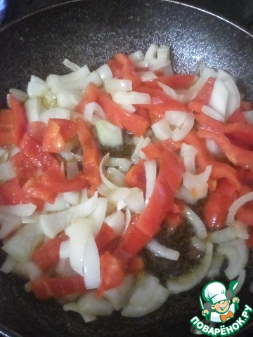 На сковороде разогреть растительное масло и обжаривать лук и перец несколько минут до мягкости.