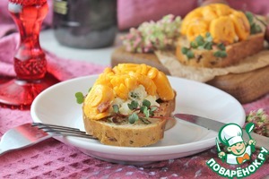 Выложить сырную закуску с яичной начинкой на ломтик хлеба, освободив от пищевой пленки.