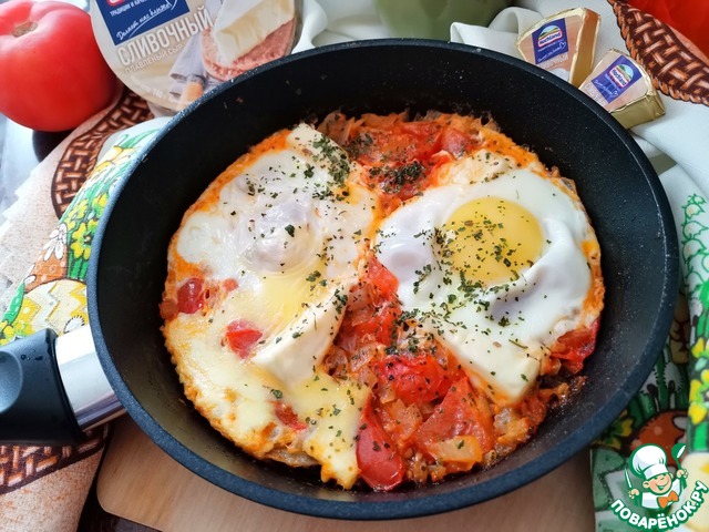 Рецепт «Яичница с плавленым сыром и овощами»: