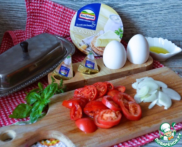 Ингредиенты для «Яичница с плавленым сыром и овощами»: