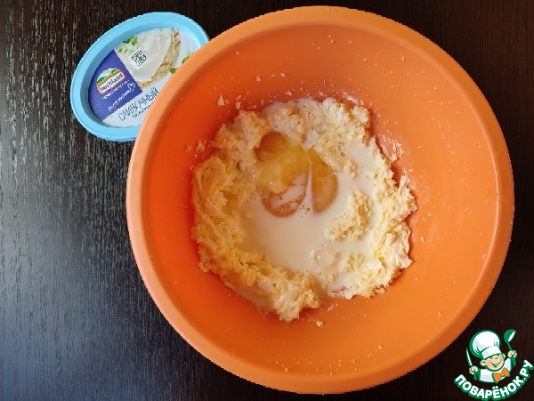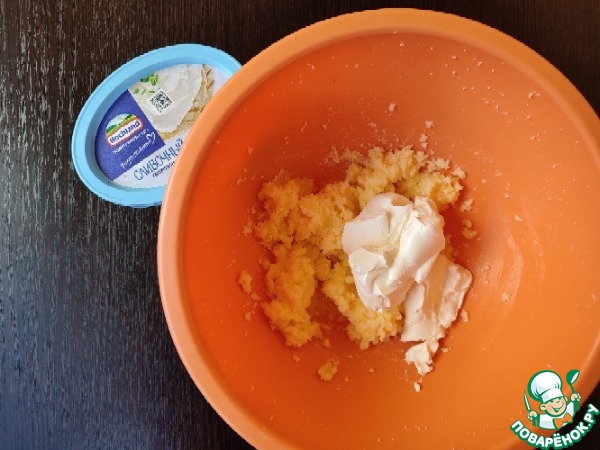 Добавляем творожный сыр. И ещё раз тщательно взбиваем миксером. -