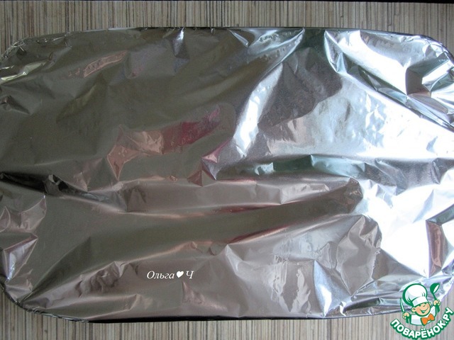 Накройте форму фольгой и закрепите. Запекайте при 190*С 1 час 25 минут.
