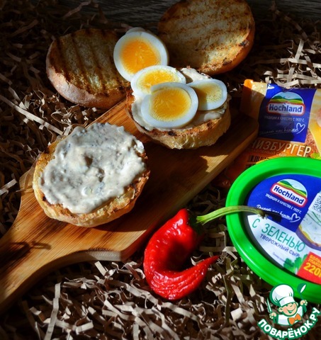 - Сыр творожный (с зеленью от ТМ Hochland) — 1 ст. л.