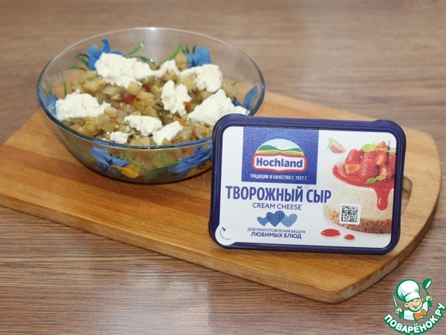 Очень сытный и вкусный рецепт с баклажаном и творожным сыром.