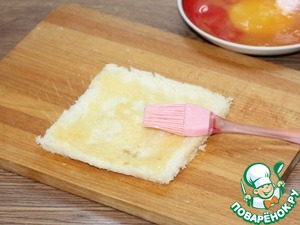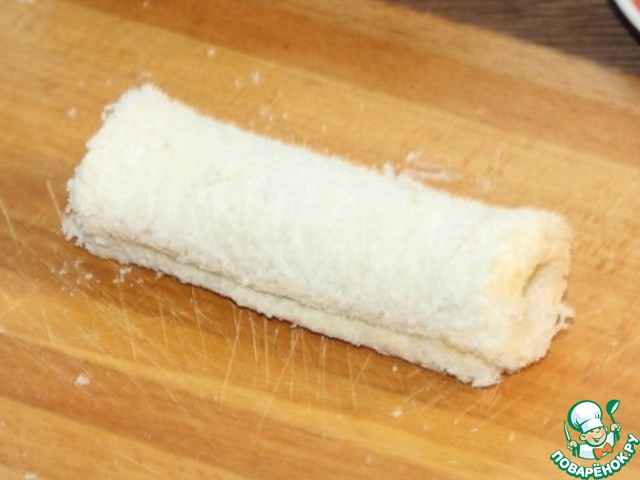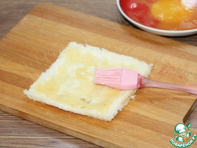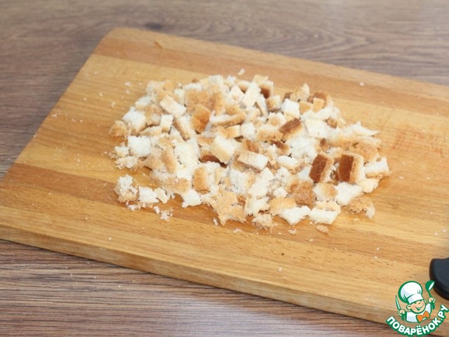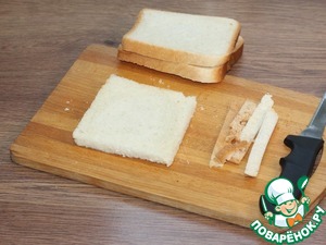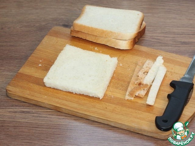 7. У ломтиков хлеба обрезаем корочку.