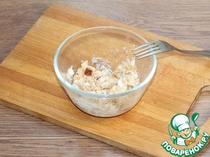9. Затем смешиваем с творожным сыром (2 ст. л.) и 1 ст. л. взбитого яйца.