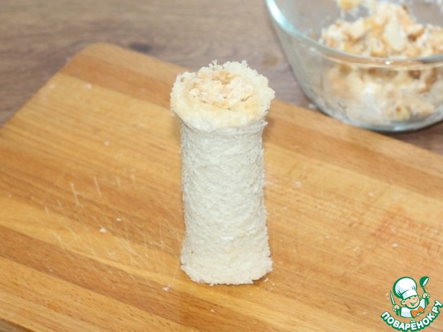 14. Край трубочек заполняем хлебной крошкой с 2 сторон.