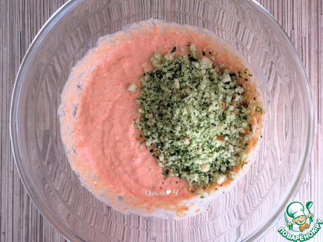 Добавьте хлебные крошки к перечно-творожной массе, перемешайте.