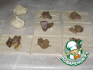 Печень, приготовленная с вином в мешочках из слоеного теста. Вполне питательно и вкусно.