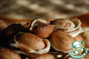 ПО времени все зависит от орешницы. Моя печет за 4 минуты. Вот такие скорлупочки у нас получаются.