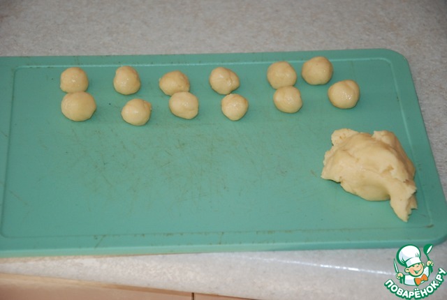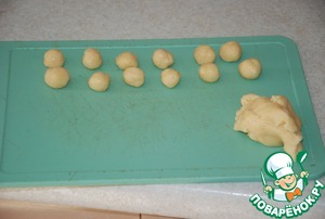 Ставим смазанную маслом растительным орешницу на разогрев. Берем небольшой кусочек теста. Остальное возвращаем в холодильник. Лепим маленькие шарики диаметром с ноготок на большом пальце руки.