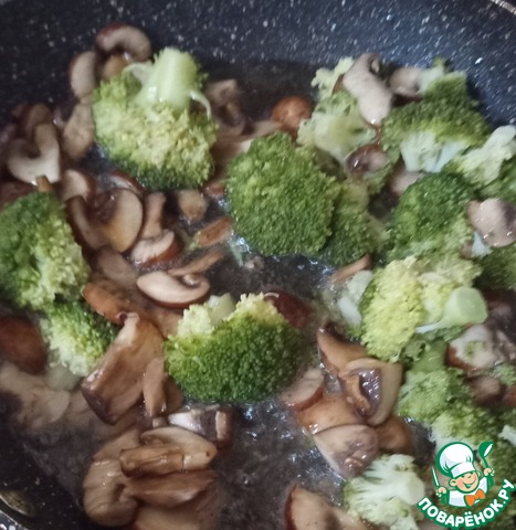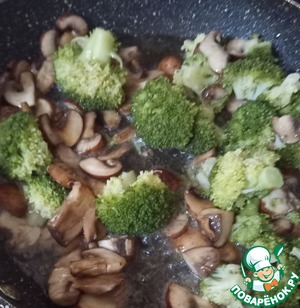 Варить брокколи в кипящей воде 6-8 минут. Если любите al.dente, то 3-4 минуты. Тем временем в сковороде жарить грибы на растительном масле 8 минут.
