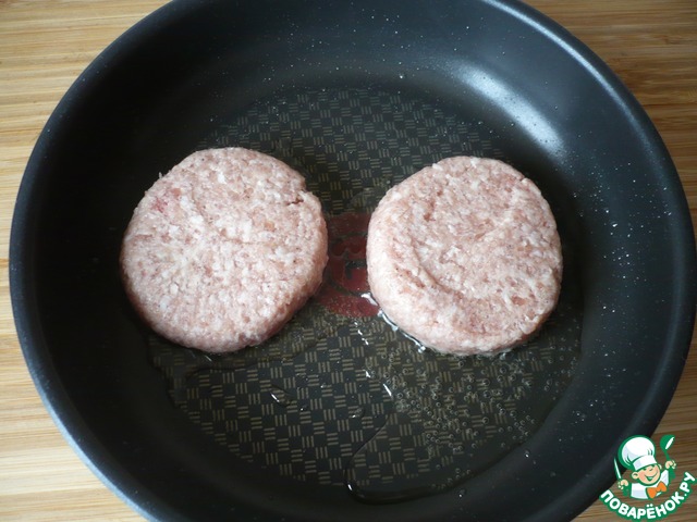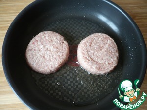 В большой сковороде на умеренно сильном огне нагрейте растительное масло и положите две котлеты, слегка прижмите их металлической лопаткой.