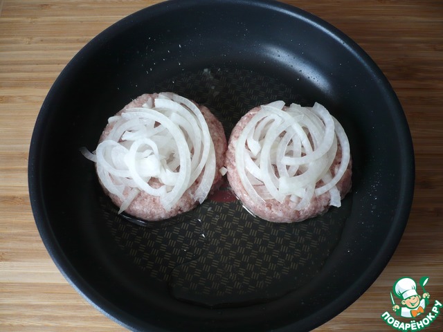 Рецепт «Двойной чизбургер "Чили" с жареным луком»: