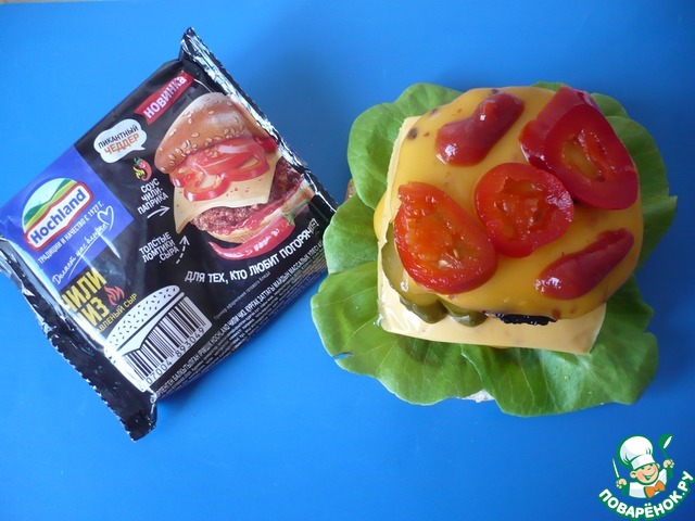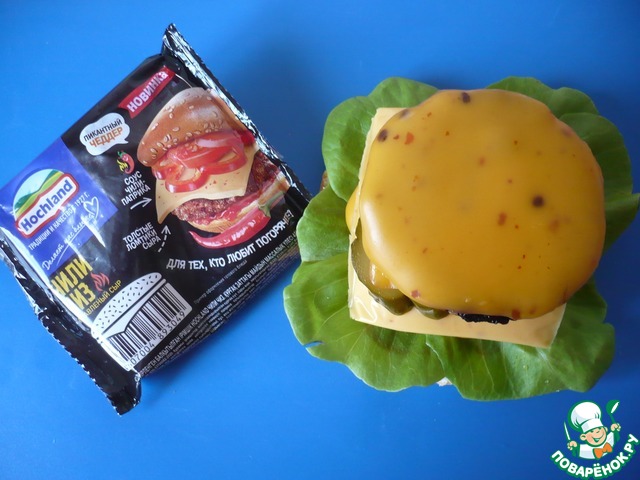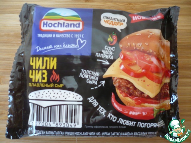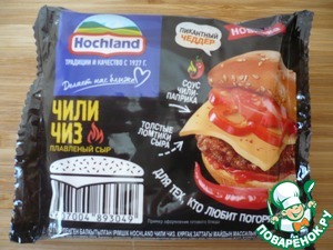 Для приготовления чизбургера я взяла плавленый сыр "Чили Чиз" ТМ "Хохланд".
