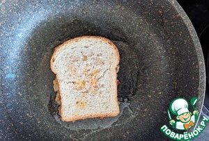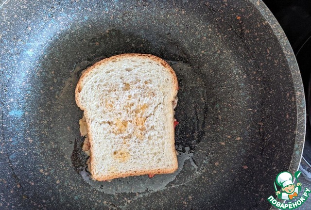 На сковороду наливаем масло, кладём тост с начинкой (начинкой вниз).