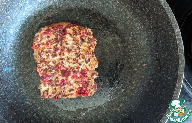 Обжариваем пару минут до золотистости, переворачиваем. Доводим до готовности ещё пару минут на среднем огне.