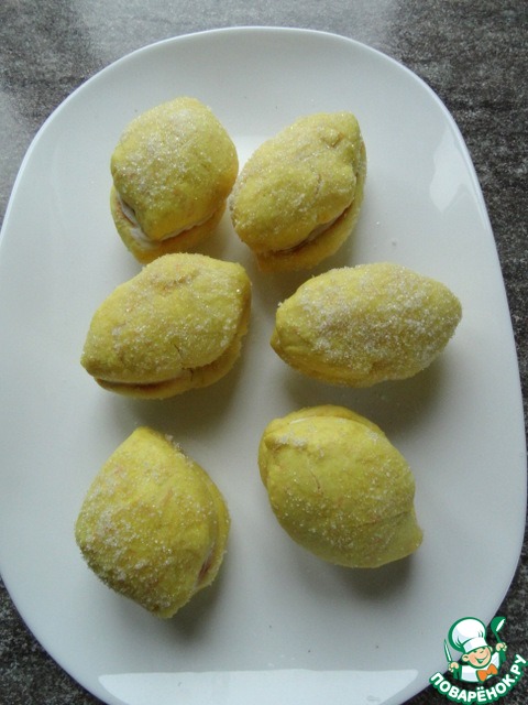 Кисточкой смазать верхушки "лимонов" и обсыпать сахаром.