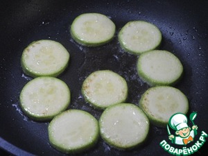 В сковороде разогреть растительное масло и обжарить кабачки, только до мягкости.