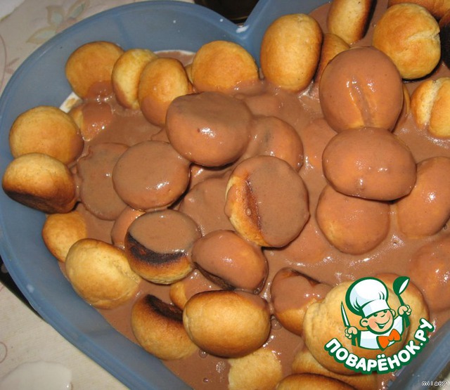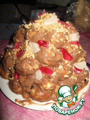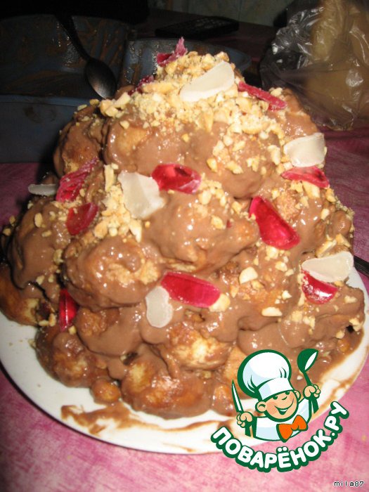 Нежнейшие шарики в обрамлении заварного крема... с легкими брызгами ароматнейших орешкови... ненавязчиво вписавшиеся ломтики бесподобного ванильного и клубничного мармелада!!!