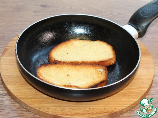 3. Добавляем немного растительного масла и обжариваем ломтики хлеба с 2 сторон до золотистой корочки, по 2 минуты с каждой стороны.
