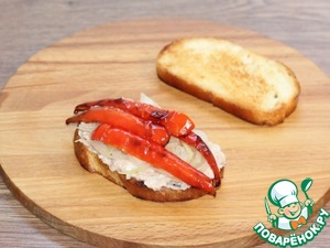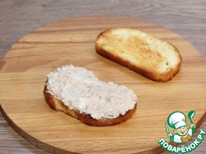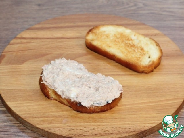5. Половину хлеба (3 ломтика) смажьте этой смесью.