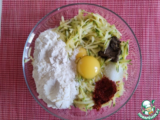 Консистенция теста должна быть как на оладьи. Поэтому муку советую добавлять частями.
