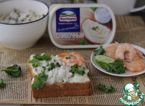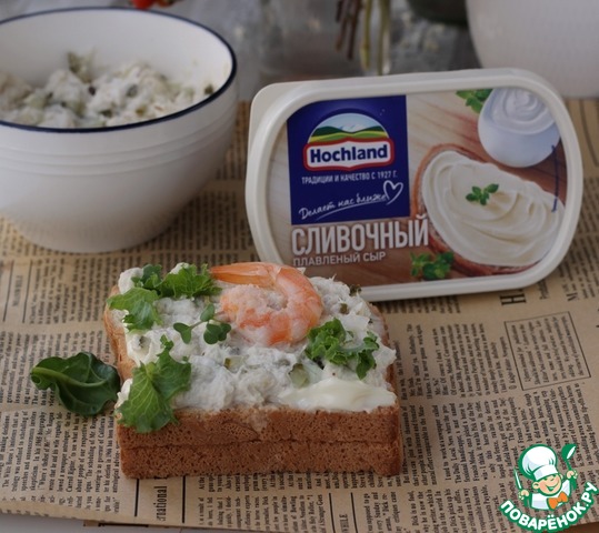- Сыр сливочный (плавленый, ТМ Hochland) — 150 г