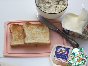 Подсушите ломтики хлеба в тостере или на сковороде.