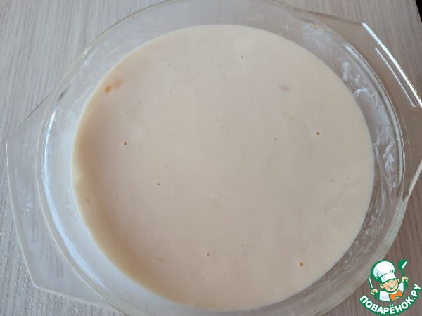 Яйца смешиваем со сметаной, солью и содой.