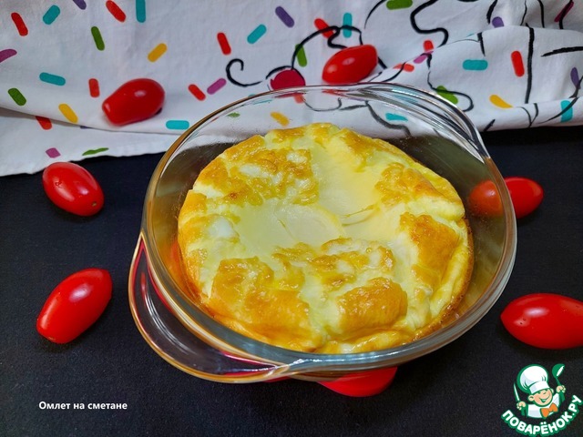 Я никогда не пробовала омлет на сметане, всю жизнь пользовалась молоком. И не могла даже предположить, что заменив одно на другое будет такой шикарный результат. Омлет получается плотным, пышным, не оседает. Прекрасный завтрак для прекрасного начала дня.