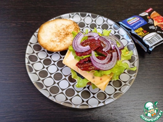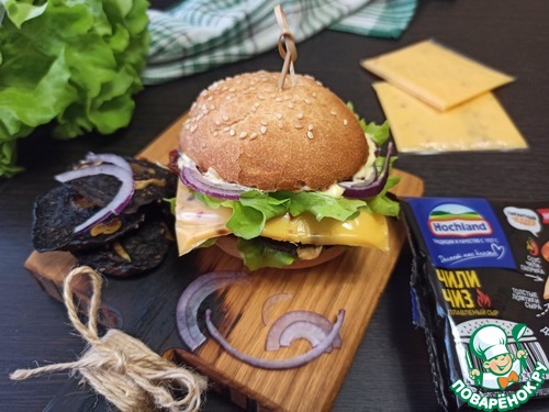 У меня сегодня грибной бургер! Да не с грибной котлетой, а с целыми запеченными моховиками. Вяленые томаты и острый сыр Чили Чиз Hochland добавят пикантности и приятного вкуса.