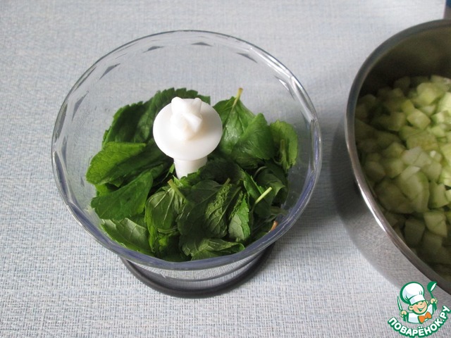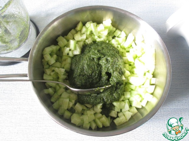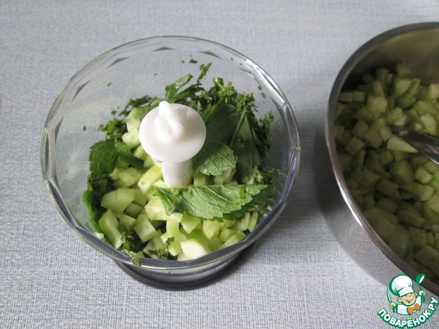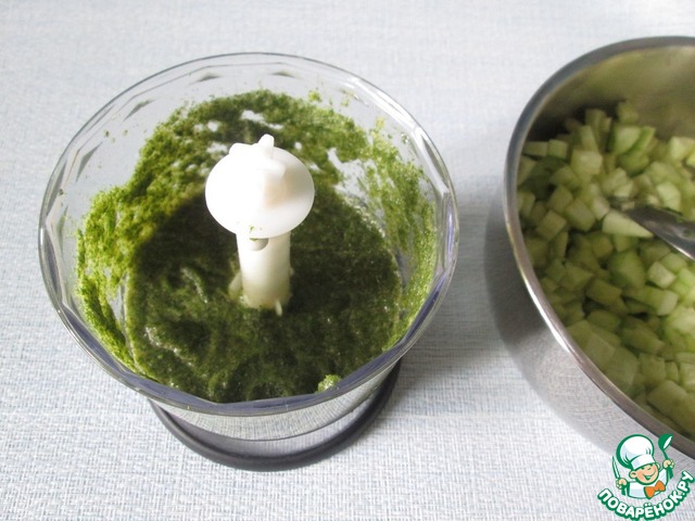 Для лучшего измельчения добавить 3-4 ст. л. нарезанных огурцов.