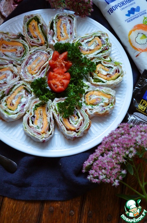 Рецепт «Рулет из лаваша с мясной нарезкой»: