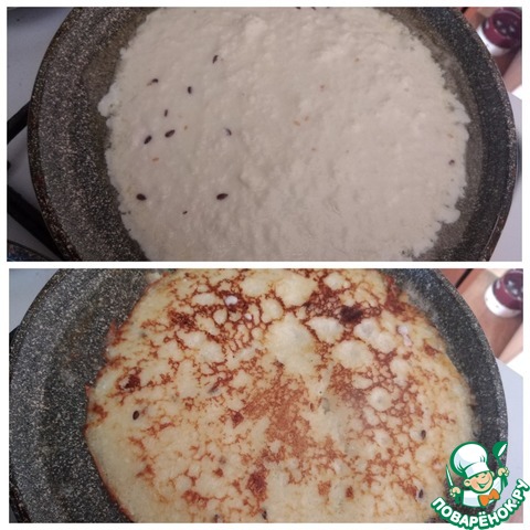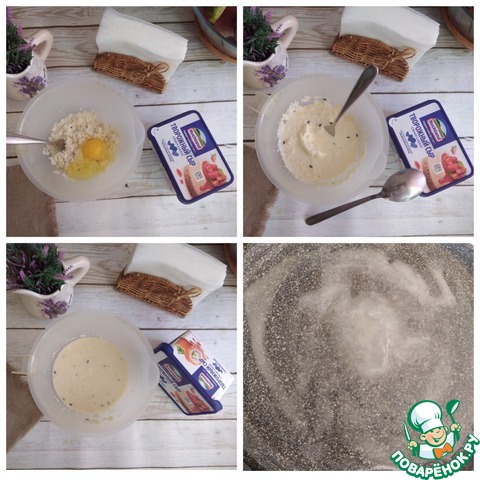 - Сыр творожный (сыр в ложке берётся с большой горкой, творожный крем-чиз HOCHLAND в ваннах 400 г) — 1 ст. л.