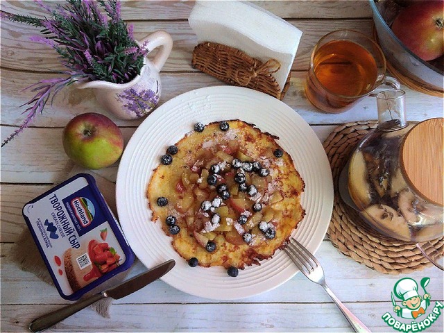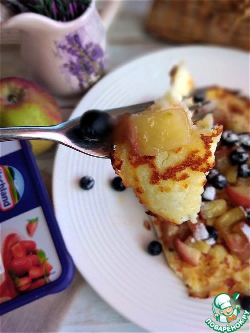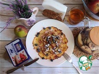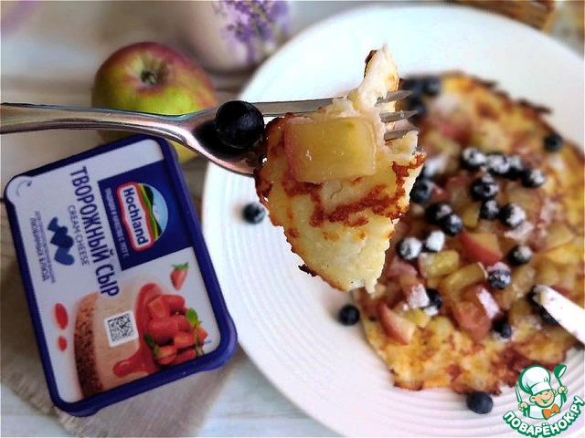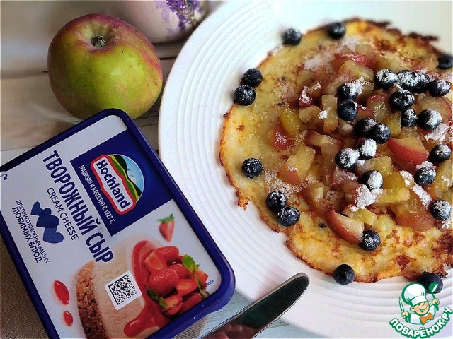Описание: Десерт-гренка из хлебной крошки с творожным сыром крем-чиз HOCHLAND. Дополним гренку карамельными яблоками с коньяком, голубикой и присыплем сахарной пудрой. Заварим хороший чай и будем наслаждаться необыкновенным вкусом хлебной гренки.