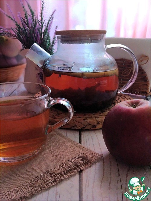 Для гренки заварила чай такой: на 600 мл отстоявшегося кипятка в чайник положила зелёный чай - 1 ст л, кипрей (Иван-чай) - 1 ст л, половинка небольшого яблока - 0,5 шт.
