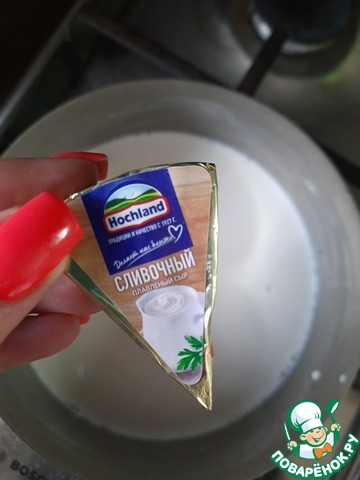 Добавить 3-4 треугольника плавленного сыра Hochland, я выбрала круг "Ассорти".