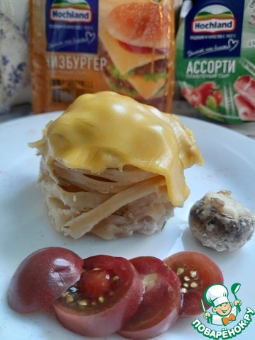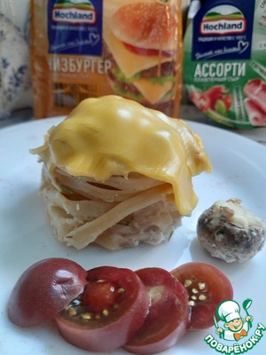 - Сырок плавленый (Hochland "Чизбургер" в ломтиках) — 8 ломт.