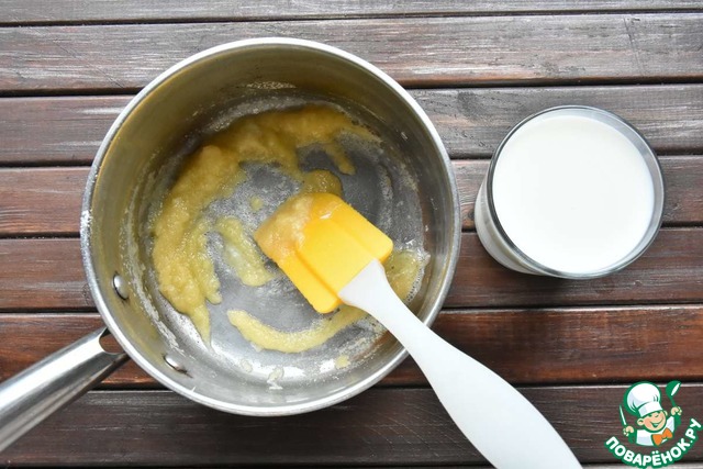 В сотейнике растапливание масло и добавляю муку. Перемешиваю.