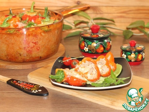 Рецепт «Фаршированный перец, запеченный в творожном соусе»: