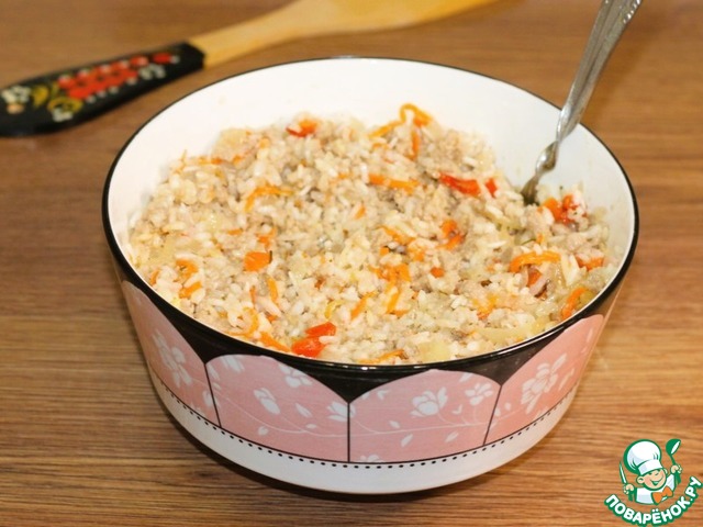 • 6. Перекладываем зажарку к рису и перемешиваем.